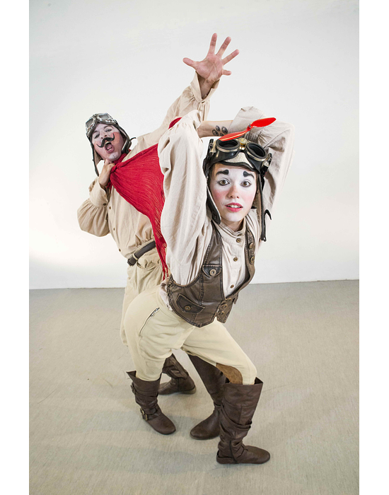 Pompous pilot Beau & his clueless co-pilot Aero have crash landed. The unlikely aeronautic duo tries everything to get back into the air - from propellers and parachutes, to balloons of all sizes, but to no avail. Distracted by their own imaginations, and the notably unhelpful contents of their emergency supply crate, the two tumble through hijinks and comedic conundrums, before emerging out the other side. The show blends clown with elements of acrobatics, mime, and puppetry, with wordless humor that will tickle audiences of all ages and languages. A strong vintage aesthetic paired with the duo’s ridiculous antics onstage is a nostalgic nod to timeless classics of old American Vaudeville. It’s like Charlie Chaplin meets Amelia Earhardt. Whether or not these bumbling aeronauts Beau & Aero will make your spirits soar.